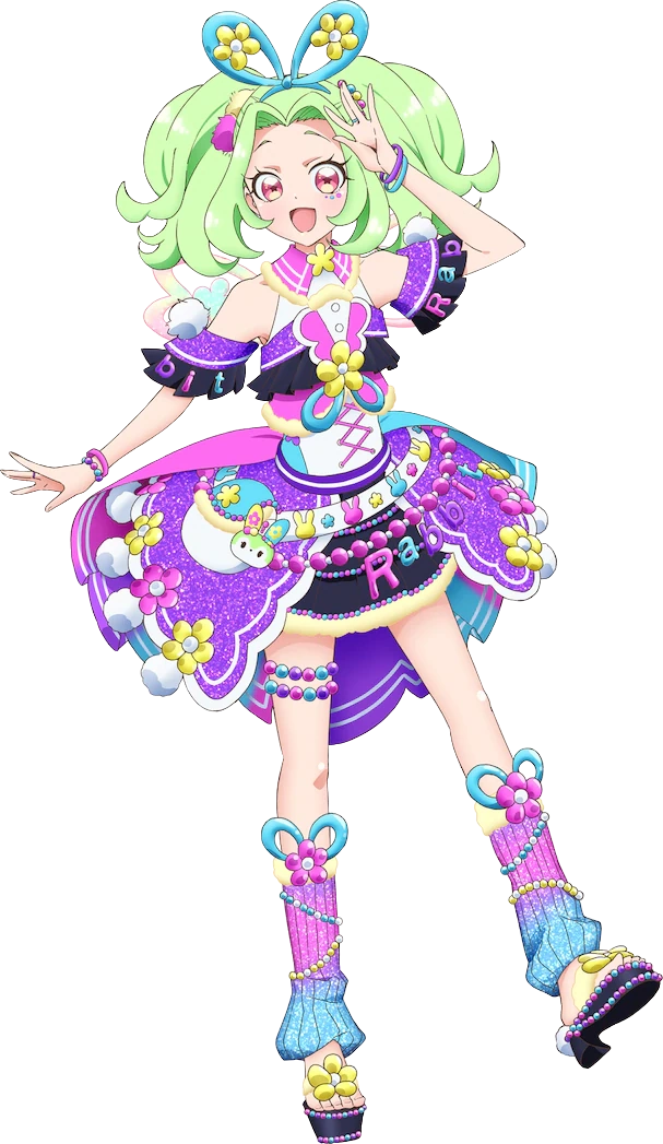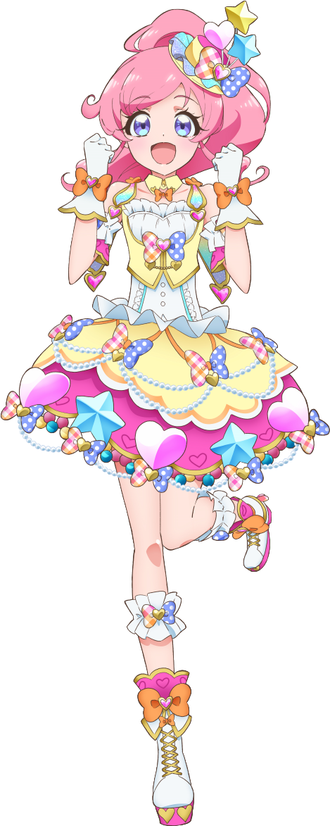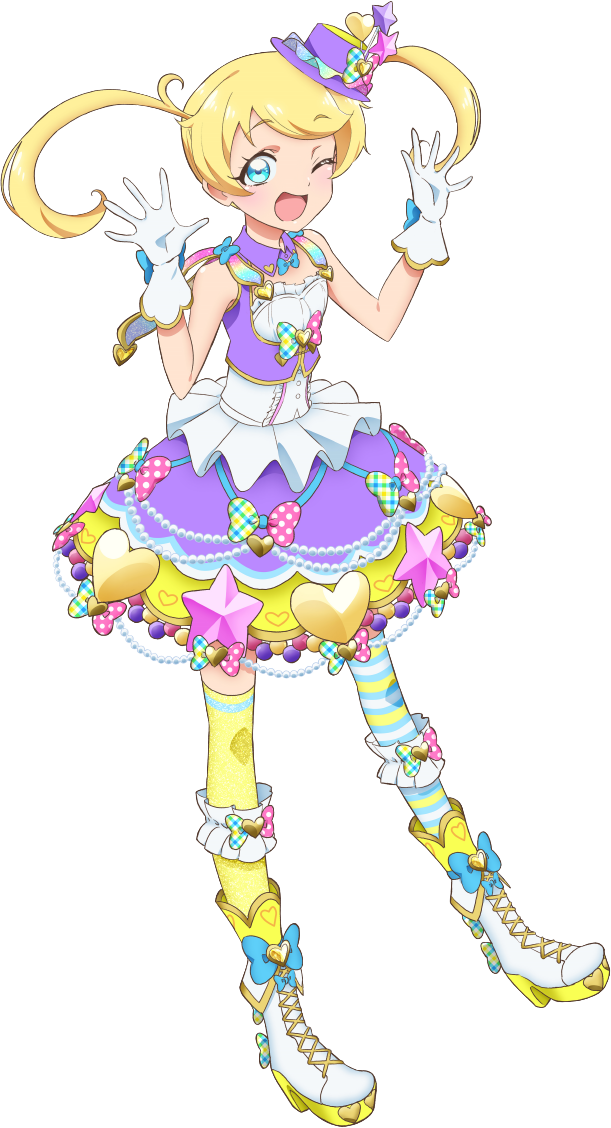 A cheerful and lively girl who comes to Kirajuku in search of her family whom she was separated from. As she befriended Mirai and the others, she developed a desire to become a Pri☆Chan idol and wanted her parents to see how she was, so she made her debut as a Pri☆Chan idol. She is actually Eve's twin sister, and after being reunited with her parents, she and Eve are now leading the Kagayaki Corporation together.